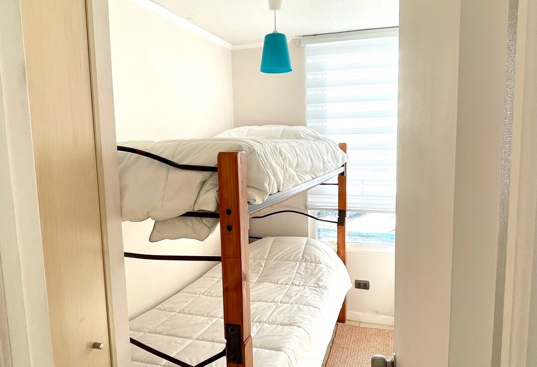 Lindo departamento sector Casino Enjoy con vista a la ciudad . 3 habitaciones 1 baño , con piscina quincho,y sala wifi , lavanderia ,estacionamiento, ascensor, acceso controlado seguridad con vigilancia las 24 horas cercanos a bares, restaurante, discoteque diversión en casino de juegos, a 2 minutos de la playa ,centro comercial Oulet Vivo .Mi alojamiento es bueno para parejas, aventureros, viajeros de negocios y familias (con hijos).